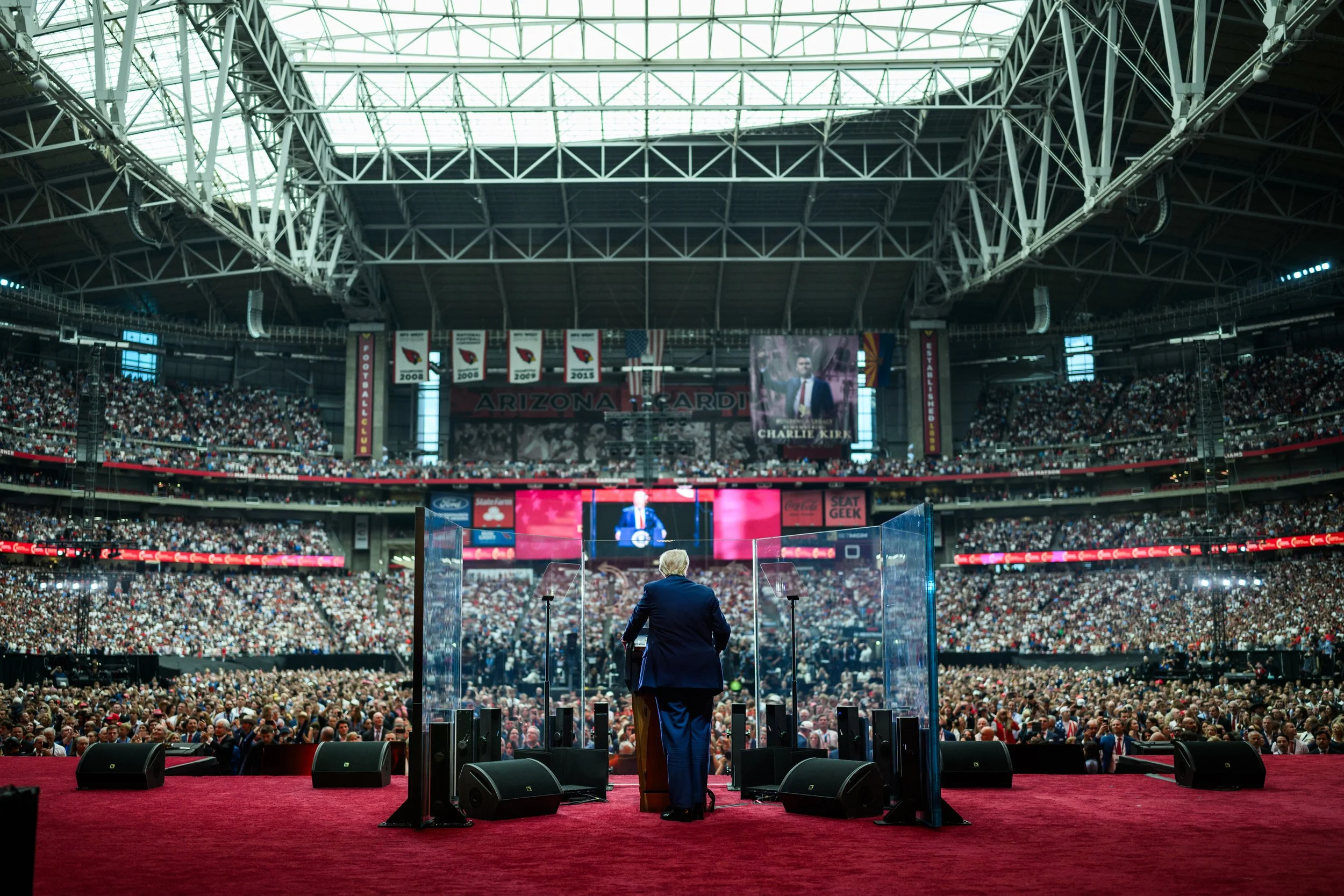 Donald Trump attends Charlie Kirk’s memorial service on September 21, 2025, at State Farm Stadium in Glendale, AZ. Photo courtesy of The White House.