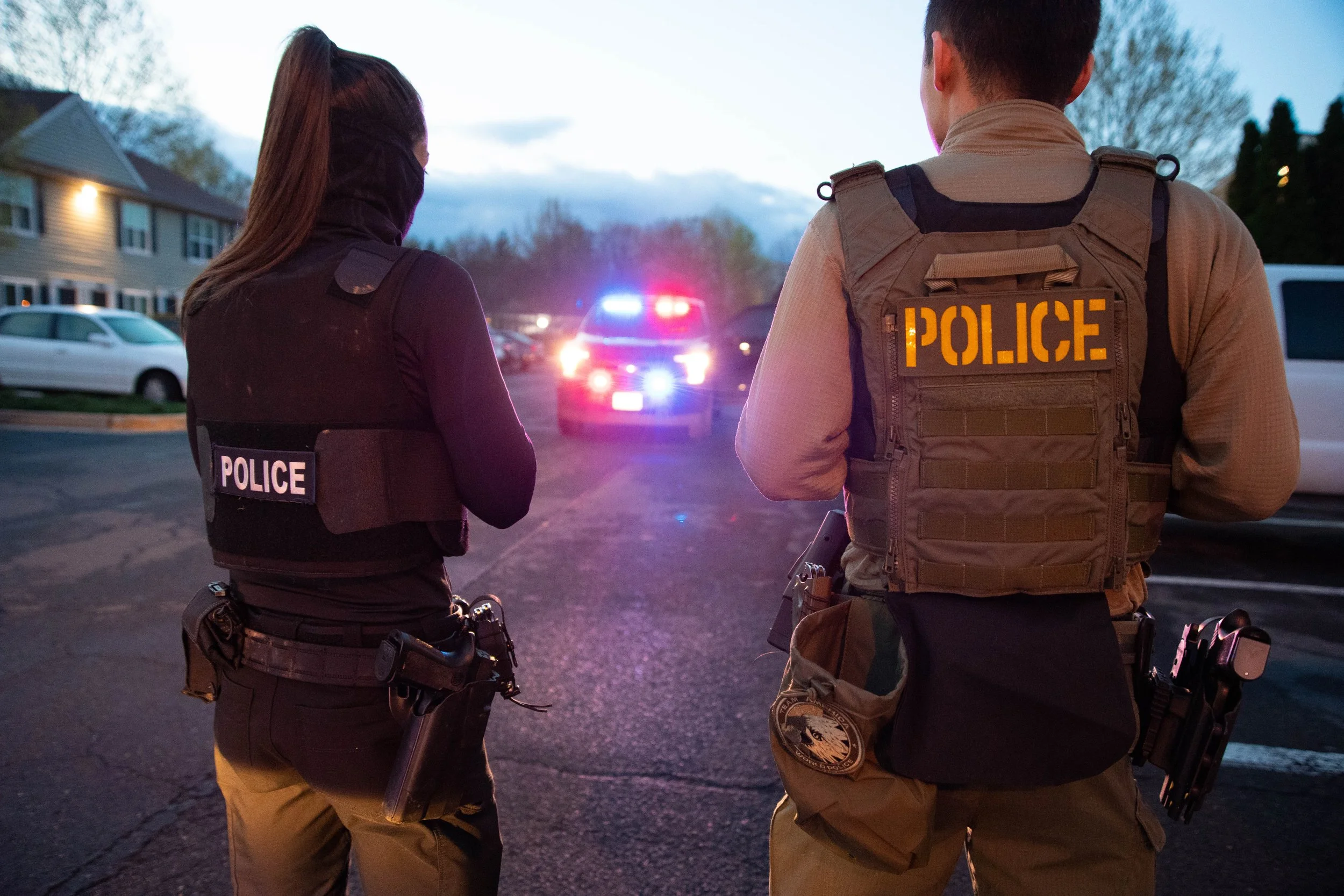 ICE officials wear generic uniforms displaying ‘police’ while conducting an arrest. Photo courtesy of Erica Knight for U.S. Immigration and Customs Enforcement.