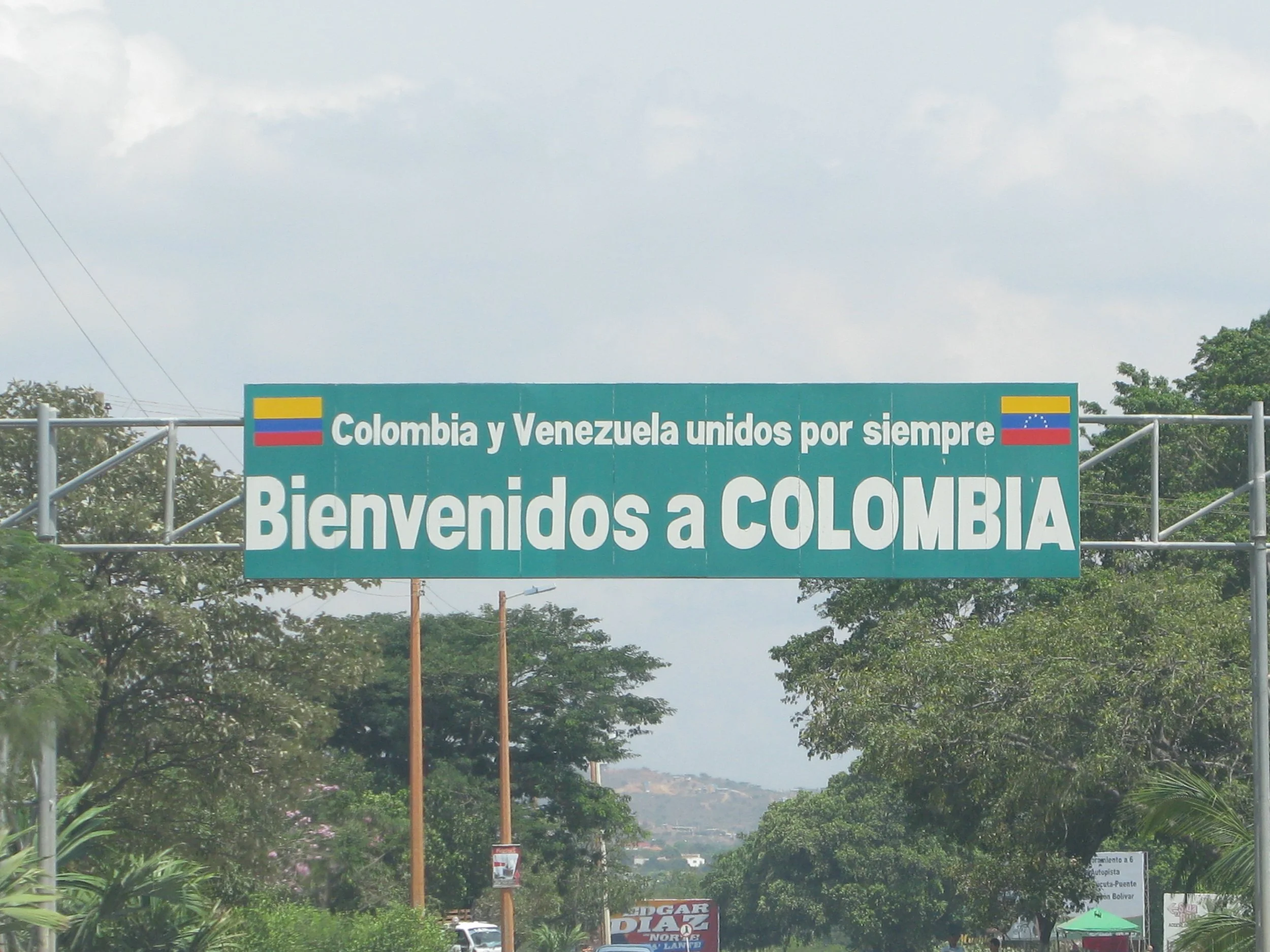 A sign at the Colombian-Venezuelan border, translated, reads: “Colombia and Venezuela United Forever. Welcome to Colombia.” Photo courtesy of Wikimedia Commons.